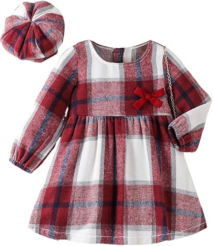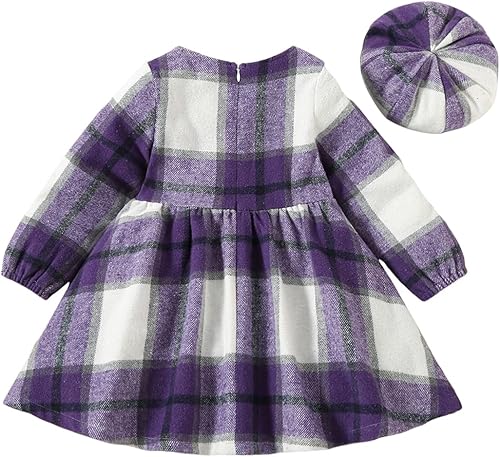 PACK LIST: 1xGirls plaid long sleeve dress+1xCute beret+. Hand/Machine washable, Our sobrisah girls fall dress makes a thoughtful choice for a girl's birthday, back-to-school, or to show your love and care on any occasion.