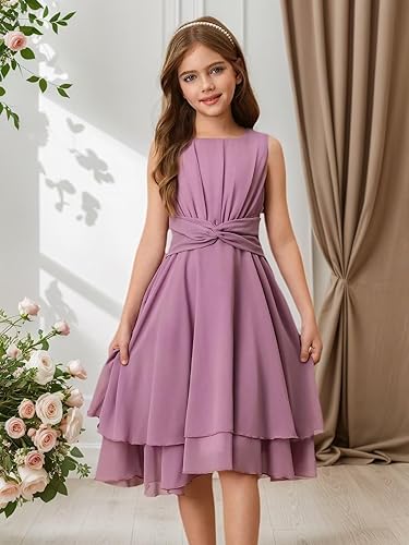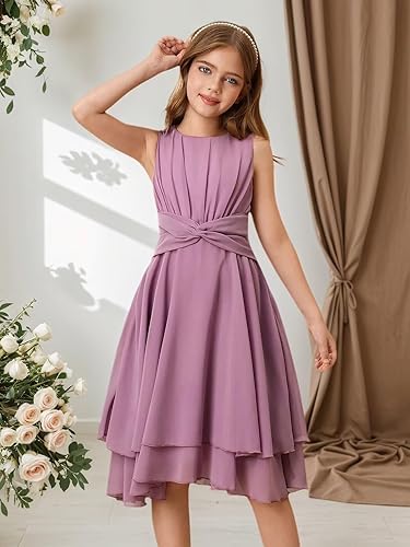 Features:The juniors bridesmaid dress features comfortable chiffon fabric, knee length, and zipper closure to create a smooth and elegant appearance. The A-line bridesmaid dress hem adopts a layered design, paired with a pleated belt, showcasing a noble temperament and making your little princess more beautiful at weddings or special occasions.