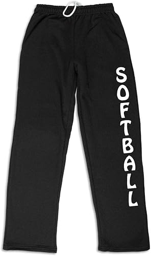 SOFT AND DURABLE: These Softball sweatpants are designed for relaxing after practice or games. Featuring jersey-lined side-seamed pockets (adult sizes only) and machine-washable fabric, they offer easy care and lasting comfort. The tapered fit includes a softball-themed print along the side.