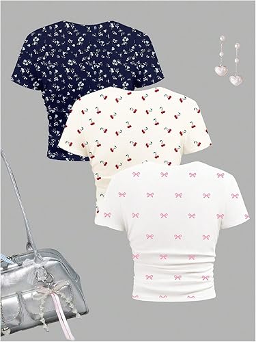 Features: Girls t shirts, featuring round neck, short sleeve, solid color, slim fit, ruched, cropped length, versatile, making it a staple for any girl's wardrobe