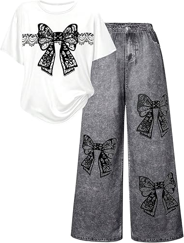 Features: Girls two piece outfit, round neck, short sleeve, elastic waist, wide leg, loose fit, fashionable and casual street style provides girl a cool look