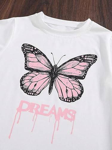 Features: Round neck, short sleeve, butterfly print, colorblock, pullovers, fashionable