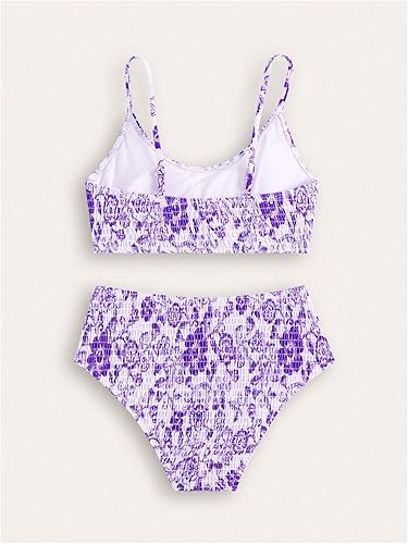 Feature: Floral print, shirred, spaghetti strap, girls swimsuit, fashionable
