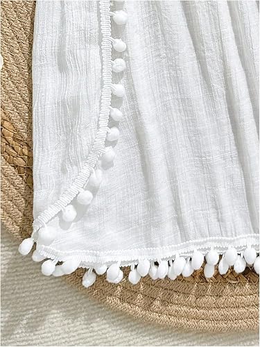 Features: Girl cover ups for swimwear, v neck, fringe trim, short sleeve, casual and effortless style, fashionable