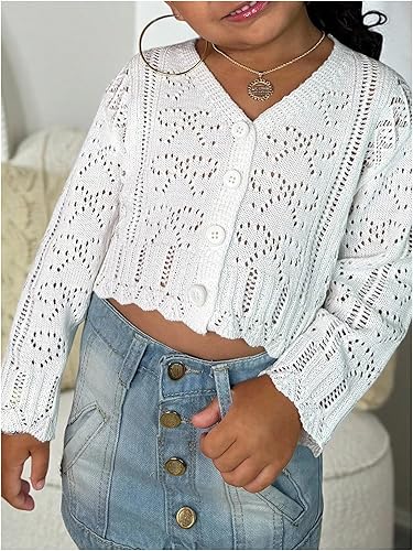 Feature: Toddler girl cardigan, v neck, drop shoulder, button front, long sleeve, creating an adorable everyday appearance