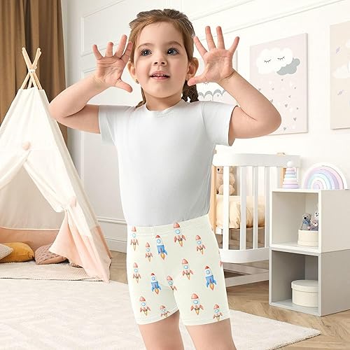 Spaceship Beige Girls Bike Shorts Toddler Soft Cotton Cartwheel Under Dress Dance Shorts(Multi-spaceship Beige,10 Years)