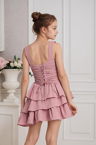 Features: Spaghetti strap homecoming dresses for teens exquisite design,square neck,pleated,A-line,high waist,short,ruffles tiered,drawstring zipper back