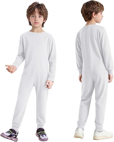 Special Needs Adaptive Clothing for Children Boys Girls Long Sleeve Anti-Strip Jumpsuit Zip Back Romper White 8 Years