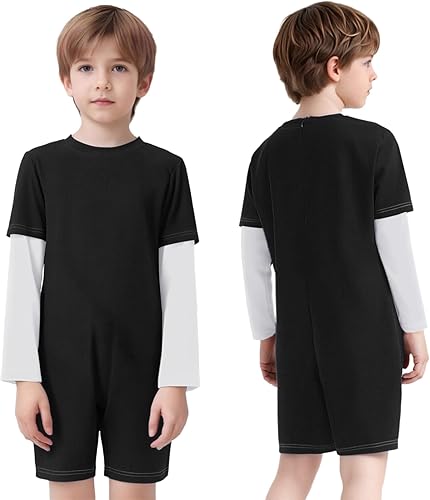 Special Needs Adaptive Clothing for Children Girls Boys Easy Dressing Anti-Strip Romper Long Sleeve Jumpsuit Black White 8 Years