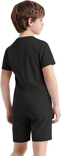 Special Needs Adaptive Clothing for Kids Girls Boys 3Pcs Short Sleeve Back Invisible Zipper Solid Color Jumpsuit Black 14 Years