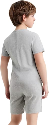 Special Needs Adaptive Clothing for Kids Girls Boys 3Pcs Short Sleeve Back Invisible Zipper Solid Color Jumpsuit Grey 14 Years