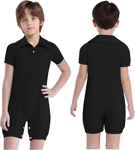 Special Needs Adaptive Clothing for Kids Girls Boys Jumpsuit Short Sleeve Button Closure Body Shirts Black 6 Years