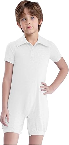 Special Needs Adaptive Clothing for Kids Girls Boys Jumpsuit Short Sleeve Button Closure Body Shirts White 10 Years