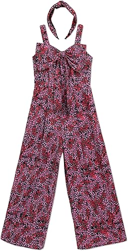 Speechless girls Sleeveless Wide Strap Front Bow Jumpsuit With Matching Headband(Blackred,16)