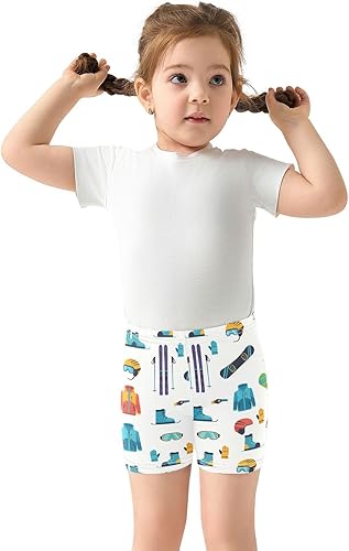Sports Skiing White Girls Bike Shorts Toddler Soft Cotton Under Dress Dance Shorts(Multi-sports Skiing White,10 Years)