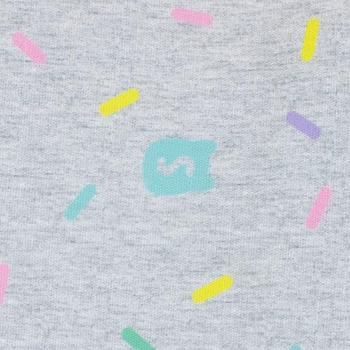 The gray bottoms feature a sweet pattern of colorful sprinkles with purple cuffs for extra coziness