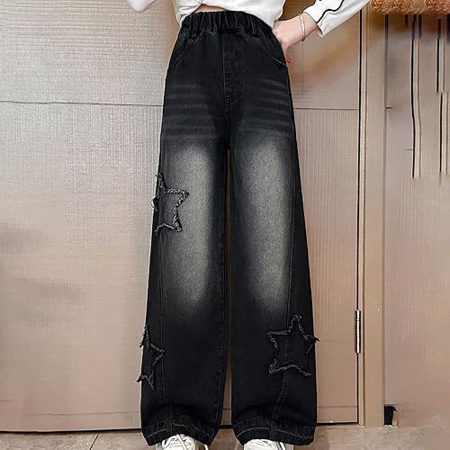 Teen Fashion Jeans: These Teen Fashion Jeans showcase a straight wide leg cut that aligns with current Y2k trends. The elastic high waisted feature offers a comfortable fit for children engaged in daily casual activities. This baggy denim design not only looks trendy but also provides the durability needed for active teen lifestyles, making these pants a smart choice for school and beyond.