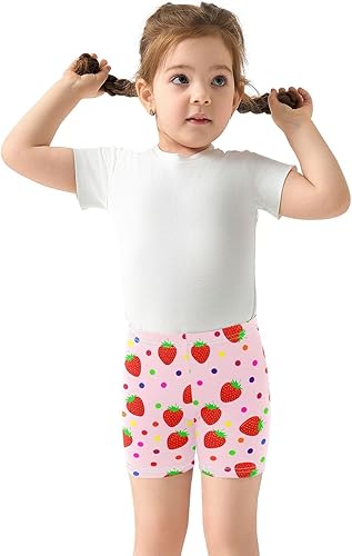 Strawberry Colorful Dots Girls Bike Shorts Toddler Soft Cotton Cartwheel Under Dress Dance Shorts(Multi-strawberry Colorful Dots,10 Years)