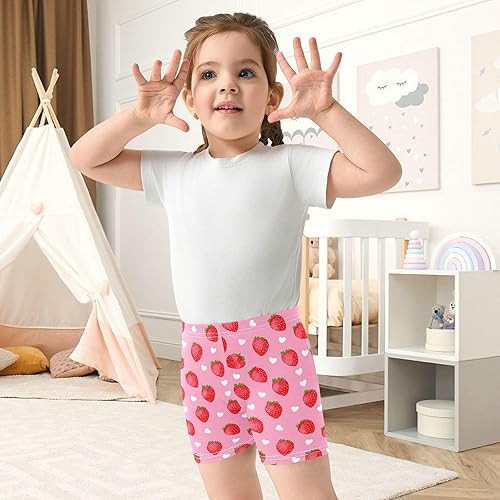 Strawberry Heart Pink Girls Bike Shorts Toddler Soft Cotton Active Under Dress Shorts(Multi-strawberry Heart Pink,10 Years)
