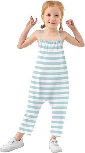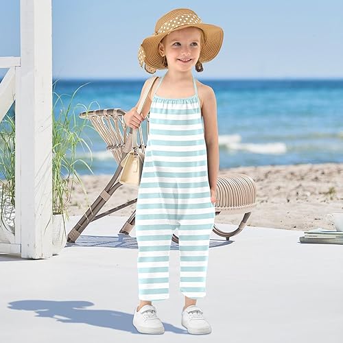 Stripe Hot Toddler Girls Jumpsuit Romper One-Piece Overalls Summer Clothes Pants for Girls(Stripe Teal,1T)