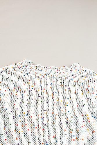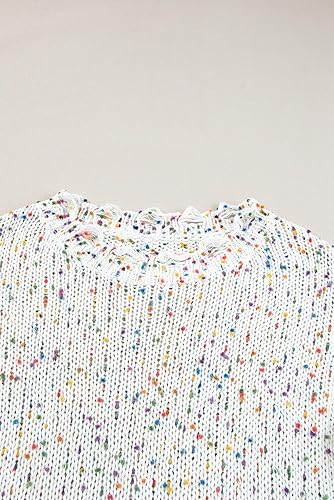 1. Vibrant Confetti Knit Sweater: Embrace the season in style with our White Colorful Confetti Distressed Knit Sweater. The colorful confetti knit silhouette and ribbed texturing add a playful and eye-catching element to your wardrobe.