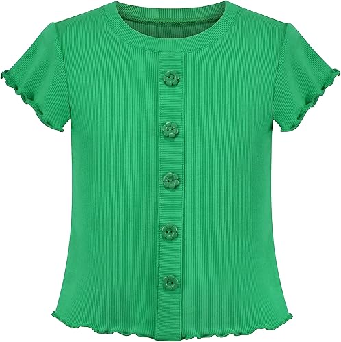 This 2-Pack of girl crop tops is a must-have for any active girl. With 2 different designs and colors, these rib-knit tops are both basic and stylish. The short sleeves provide comfort and freedom of movement, making them perfect for sports, gym, and athletic activities. Dress her in casual comfort and let her shine in these versatile tops. For most accurate fit, we recommend checking detailed measurement before purchase.