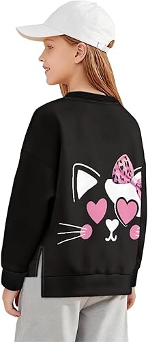 Match: Girls' crewneck sweatshirt for coming fall and winter. You can match this side slit sweatshirts with jeans, denim shorts, sweatpants, leggings, skirts or jackers, coat, blouse and sneakers wedges or boots to complete a casual everyday look