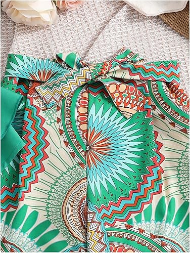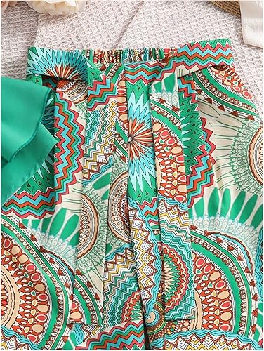 Features: Ruffle, tiered layer, sleeveless, printed, belted, tie shoulder, 2 piece set, vacation outfits