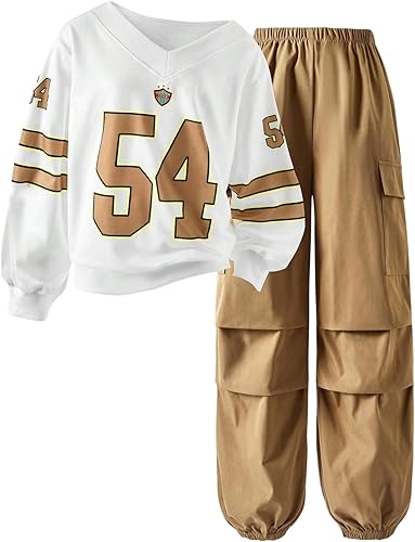 Features: Striped print, number print, color block, long sleeve, v neck, elastic waist, flap pocket, 2 piece outfits for girls