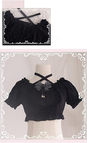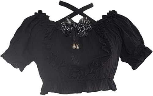 Bowknot, Puff Sleeve, Short Sleeve , Sweet Lolita or Goth Casual Halter Neck Lace Up Crop Blouse, Suitable for Birthday Party, Lolita Fashion Anime Cosplay Party , JSK Cosplay Princess Shirts , and It's A Gift for Girlfriend , Daughter , Niece .
