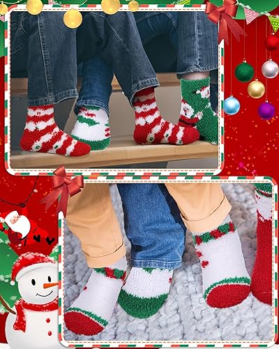 Quality Material: made of quality acetate fiber, our kids Christmas fuzzy socks adopt napping technology, with good workmanship, breathable, sweat absorbent, comfortable and soft, but not too tight when wearing, so you can stand and walk for a long time without feeling uncomfortable, and the reliable structure allows you to use them for a long time