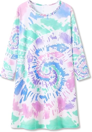 Feature: This girls nightgown feature stylish blue & coral tie-dye swirl pattern, it will make your girls stand out on Pajama Day or slumber party with this nightdress.These comfy pajama gown are the perfect gift for little or big kid girls on Christmas, Birthday, Thanksgiving and New Year gift.