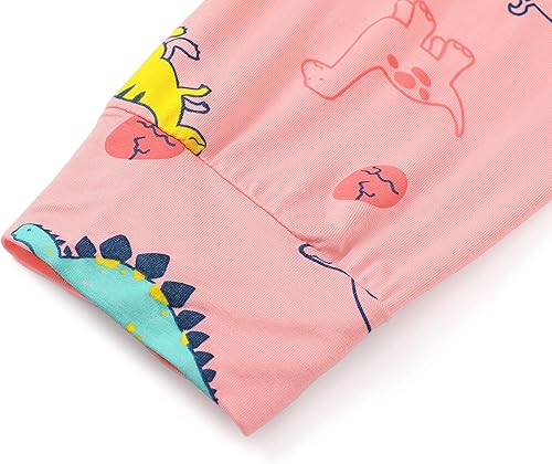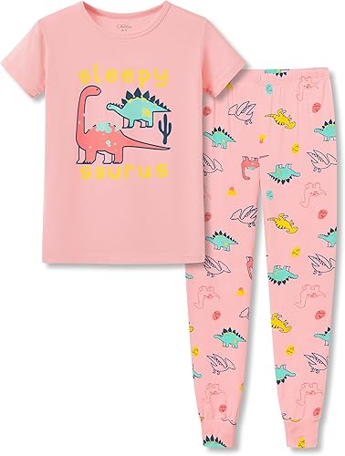 Fun blue short sleeves with all-over dinosaur patterns and matching pants set will make your boy or girl the coolest kid in pajamas.These snug-fitting unisex boys & girls pajamas for toddlers or little kids are stylish and cute, featuring a crewneck and pullover design with an elastic waistband pants for easy dressing and comfy sleep to your baby.