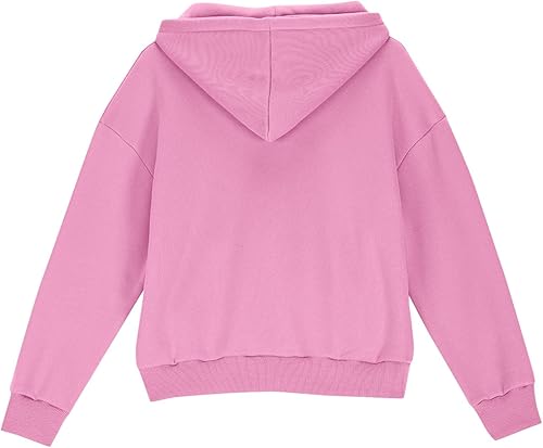 Teen Girl Hoodies Oversized Cropped Sweatshirts Half Zip Up Long Sleeve Clothes Pullover Fall Outfits With Pocket(Am214-pink,7-8 Years)