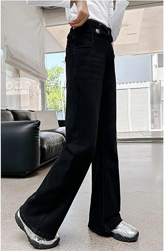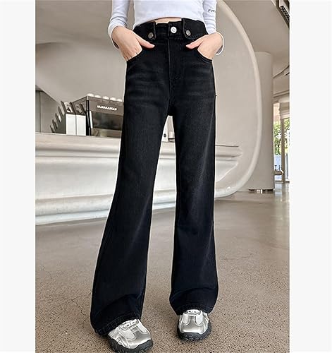 Teen Girls Baggy Bell Bottom Jeans High Waist Stretchy Slim Fit Denim Pants Skinny Casual Loose Comfy Soft Trouser(Black,5-6 Years)