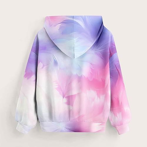 Teen Girls Cute Gradient Sweatshirts Pullover Kids Hoodies Oversized Preppy Long Sleeve Fall Winter Tops With Pockets(Purple,6-7 Years)