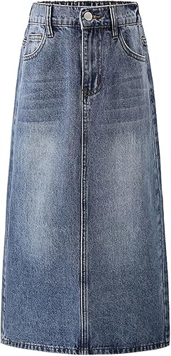 Teen Girls Denim Skirts Buttons Baggy Straight Casual Bottoms Dress Kids Long Jeans Dresses Concert Dress for Girls(Blue,11-12 Years)