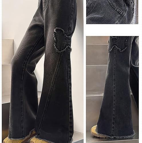 Teen Girls Flared Leggings Jeans Elastic High Waist Bell Bottom Denim Pants Kids Girls Y2k Casual Streetwear Trousers(Black,15-16 Years)