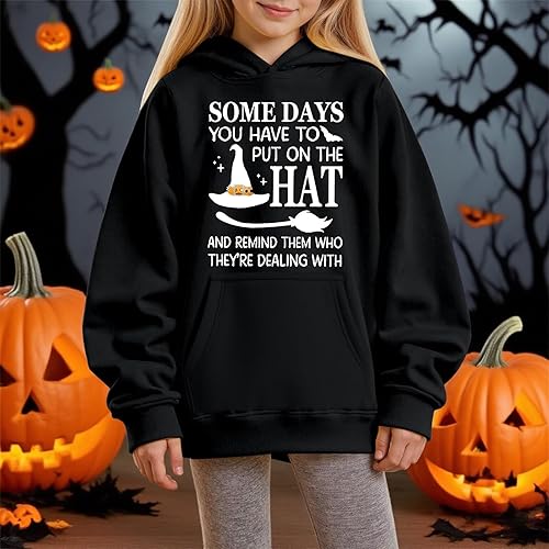 Teen Girls Halloween 3D Printed Hoodies Spooky Season Sweatshirt Letter Print Cute Casual Trendy Pullover Clothes(A-black,9-11 Years)