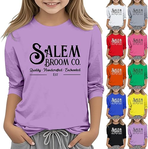 Teen Girls Halloween Clothes Kids 3/4 Sleeve Crewneck Halloween Shirts Girl Funny Graphic Tees Hocus Pocus Fall Party Tops(White,12-13 Years)