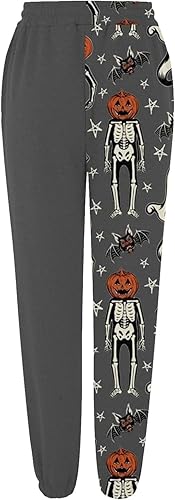 Teen Girls Halloween Sweatpants Pumpkin Graphic Baggy Wide Leg Joggers Pants Elastic Waist Warm Cotton Long Trousers(Grey,11-12 Years)