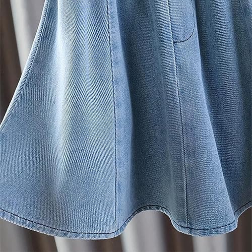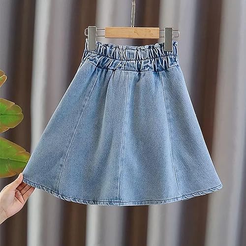Teen Girls Short Pleated Jean Skirts Kids Y2K Elastic Waisted Buttons Mini Skirt Denim Skort Girl Y2k A-Line Ruffled Skirt(Light Blue,10-11 Years)