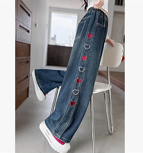 Material Comfortable Fit:Crafted from denim, these jeans for girls ensure comfort and durability. The wide-leg, baggy design offers ample room for movement, making them for active kids. High-waisted with an elastic waistband