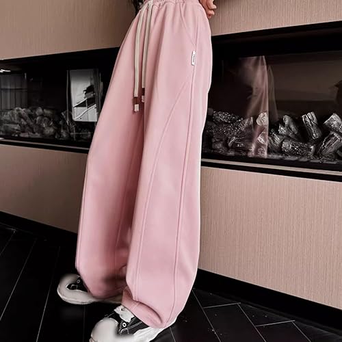 Teen Girls Stylish Straight Sweatpants Baggy Elastic High Waist Solid Color Sport Pants Casual Comfy Soft Trouser(Pink,7-8 Years)