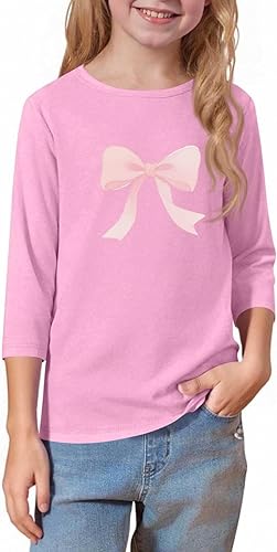 Teens Girls Tops 3/4 Sleeve Spring Tshirt Cute Crewneck Going Out Clothes Flowy Floral Print 3/4 Sleeve Outfits Casual(Tc82-pink,5-6 Years)