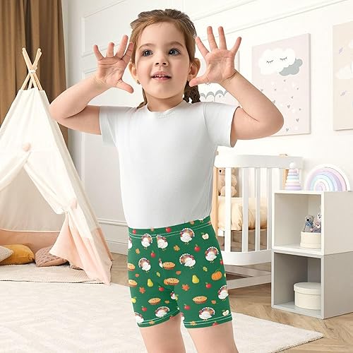 Thanksgiving Turkey Green Girls Bike Shorts Toddler Soft Cotton Under Dress Dance Shorts(Multi-thanksgiving Turkey Green,10 Years)