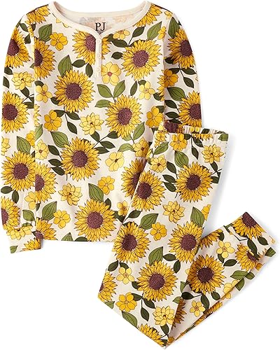 PAJAMA TOP: Rib-knit henley neck, long sleeves, sunflower print