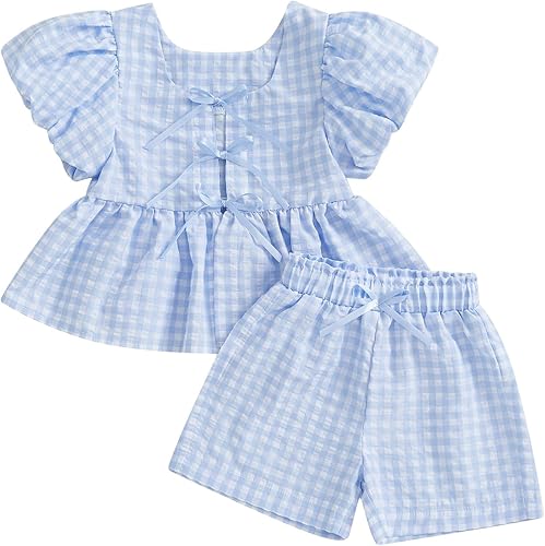 Design: Toddler sets for girls have added fashionable plaid element for a cute look;puff sleeve was fashion and cool in summer,elastic waist shorts, With a casual style, easy to paired with any kind of footwear, such as sneakers, boots, ect, to make your baby girl look more chic