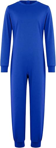 TiaoBug Kids Boys Girls Special Needs Adaptive Clothing Long Sleeve Long Leg Zip Back Jumpsuit Anti-Strip Romper Royal Blue 14 Years