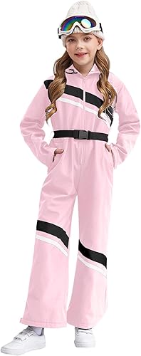 TiaoBug Kids Snowsuit for Girls One Piece Ski Suit Hooded Jumpsuit Waterproof Mountaineering Hiking Overalls(Pink,6 Years)